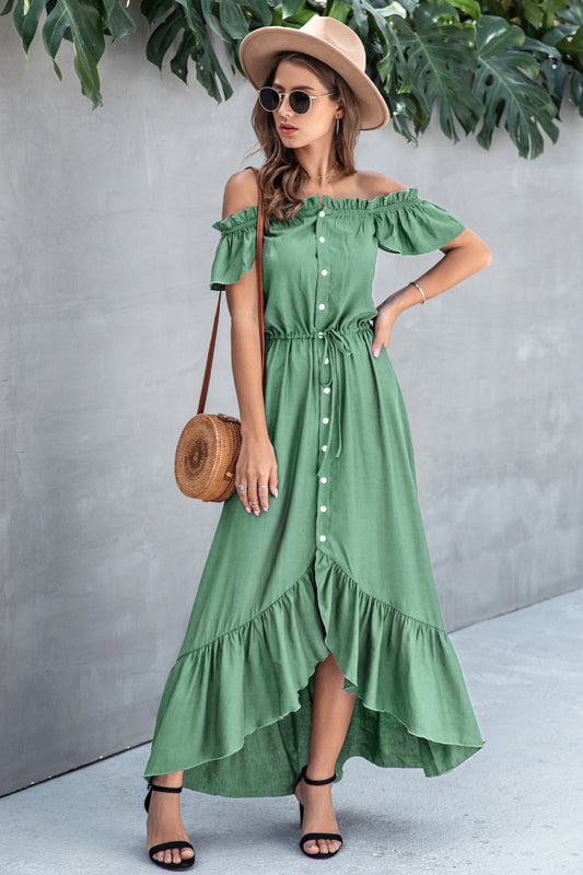 Cap-Sleeve V-Back Chain Detail Asymmetrical Dress